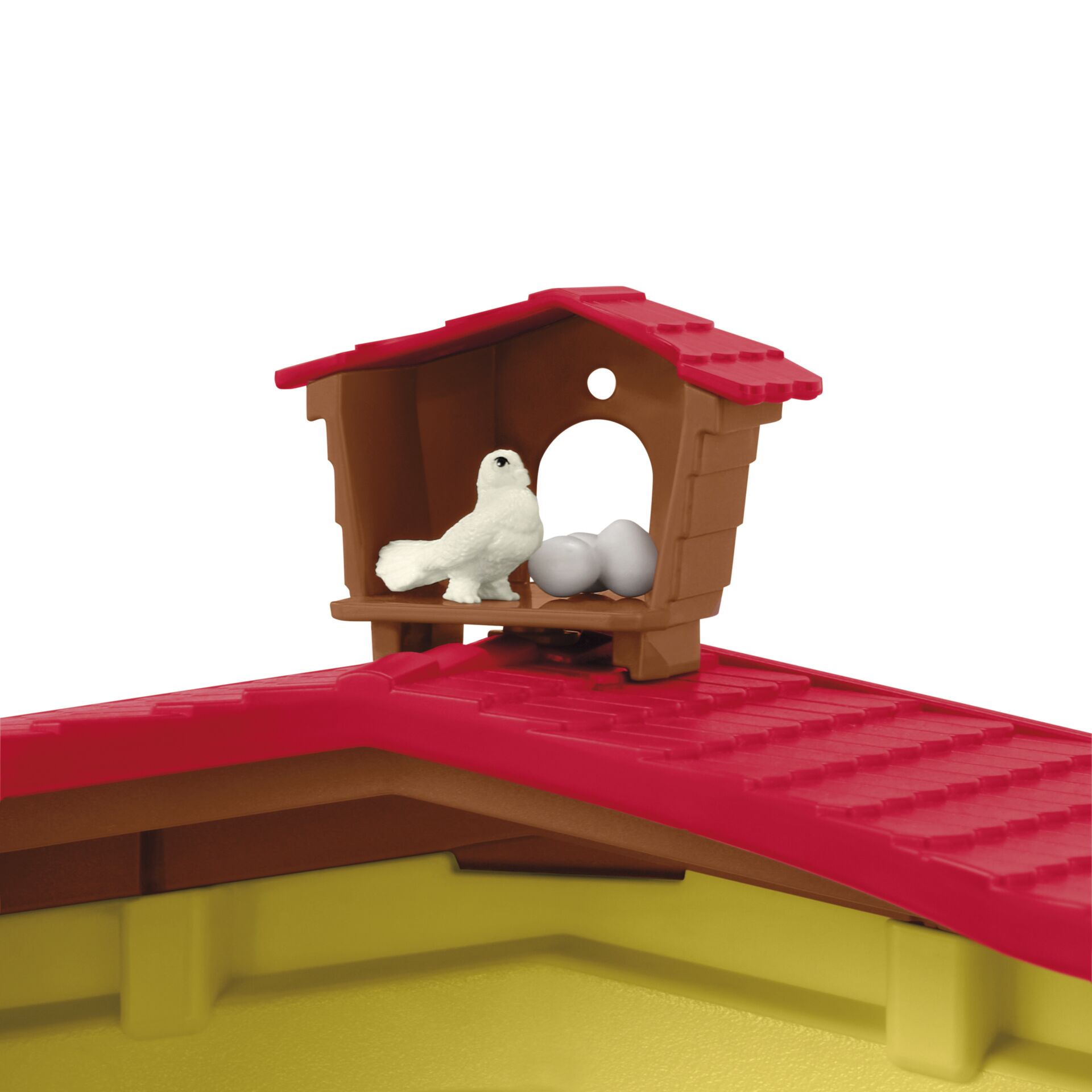 - Setinhalt: 1x Stallgebäude, 1x Bauer Paul, 1x Kuh, 1x Kalb, 1x Schwein, 1x Ferkel, 1x Katze, 1x Taube, 1x Maus, 1x Taubenhäuschen, 2x Blumenkasten, 2x Stroheinleger, 4x Zaun lang, 2x Zaun kurz, 1x Kran mit Seilwinde, 1x Futterkarusell, 1x Heuhöhle, 1x Wasserschlau, 1x Leiter, 1x Futterkiste, 1x Raufe, 1x Napf, 1x Nuckelflasche, 1x Kuhbürste, 1x Futtertrog, 1x Heugabel, 1x aufspießbares Heu, 1x Besen, 1x Schubkarre, 1x Eimer, 1x Strohballen, 1x Heuballen, 8x Möhren, 6x Äpfel, 1x Eier, 1x Stickerbogen