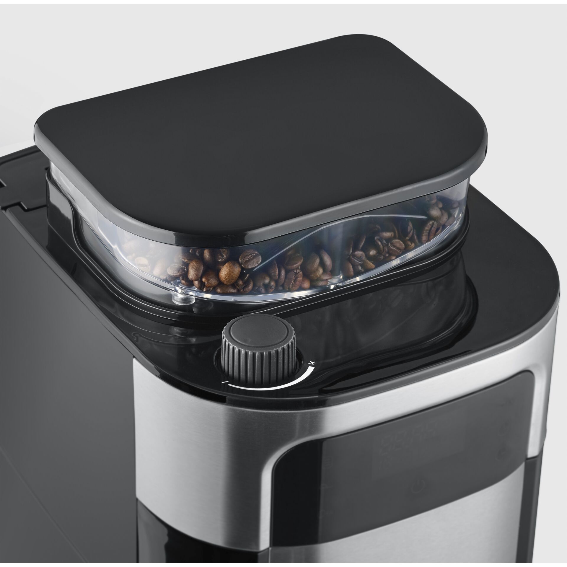 - Mahlgrad und Kaffeemenge einstellbar