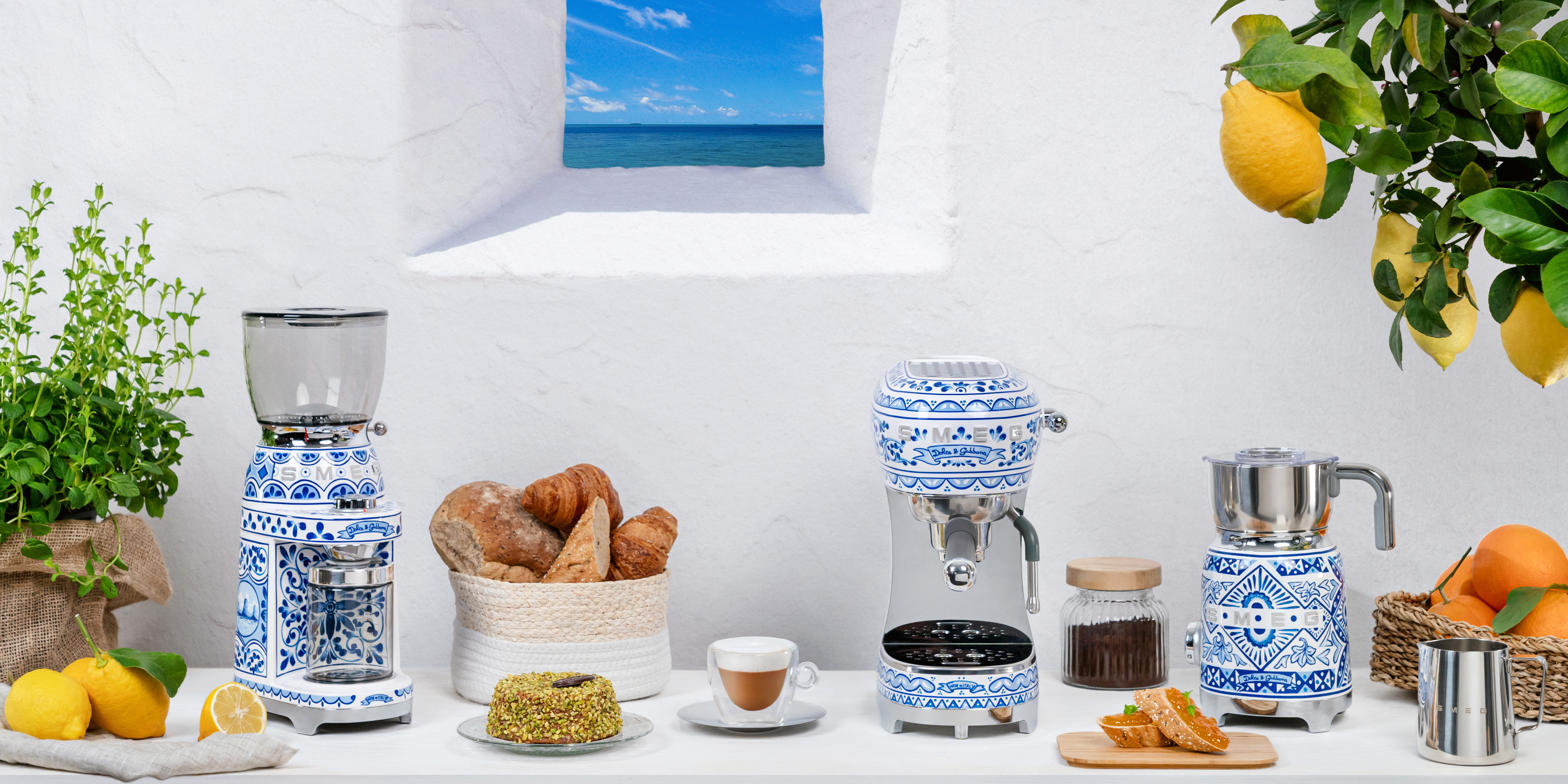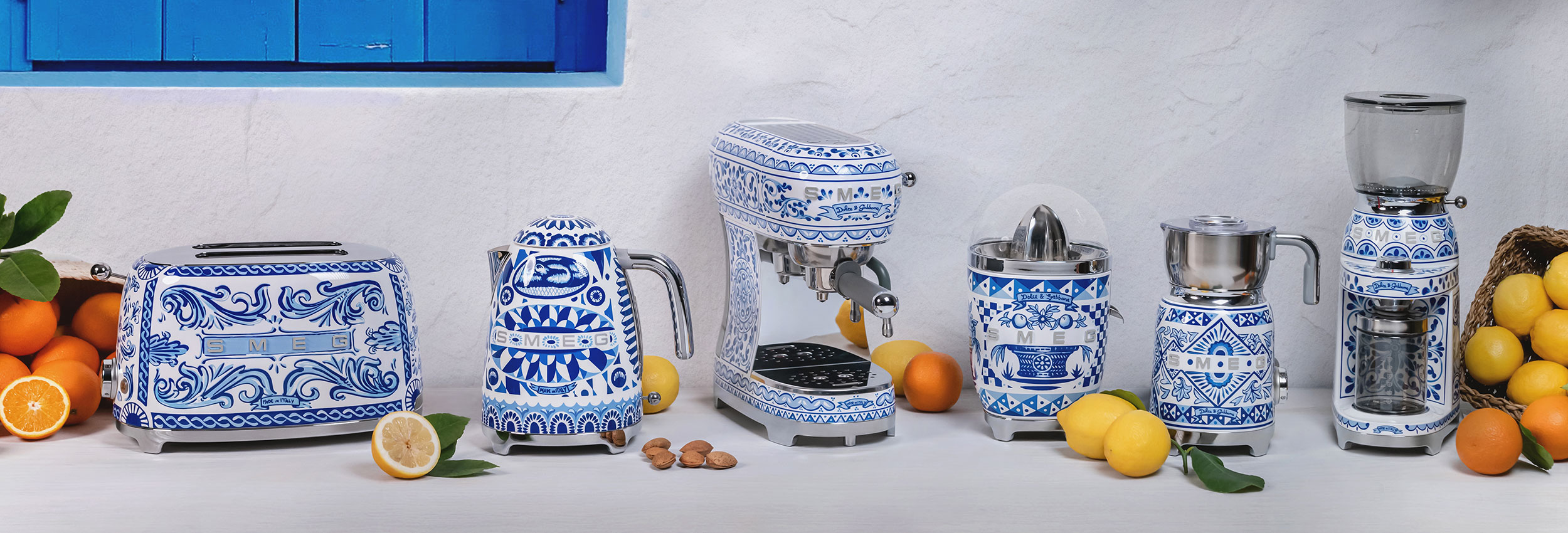Die künstlerischen Seelen von SMEG und Dolce&Gabbana, die sich bereits bei den Kollektionen "Sicily is my love" und "Divina Cucina" begegnet sind, kommen im Projekt Blu Mediterraneo wieder zusammen. Die neue Kollektion von Kleingeräten wurde von SMEG mit dem Design von Matteo Bazzicalupo und Raffaella Mangiarotti (deepdesign) und der unverwechselbaren Kreativität von Dolce&Gabbana entworfen.