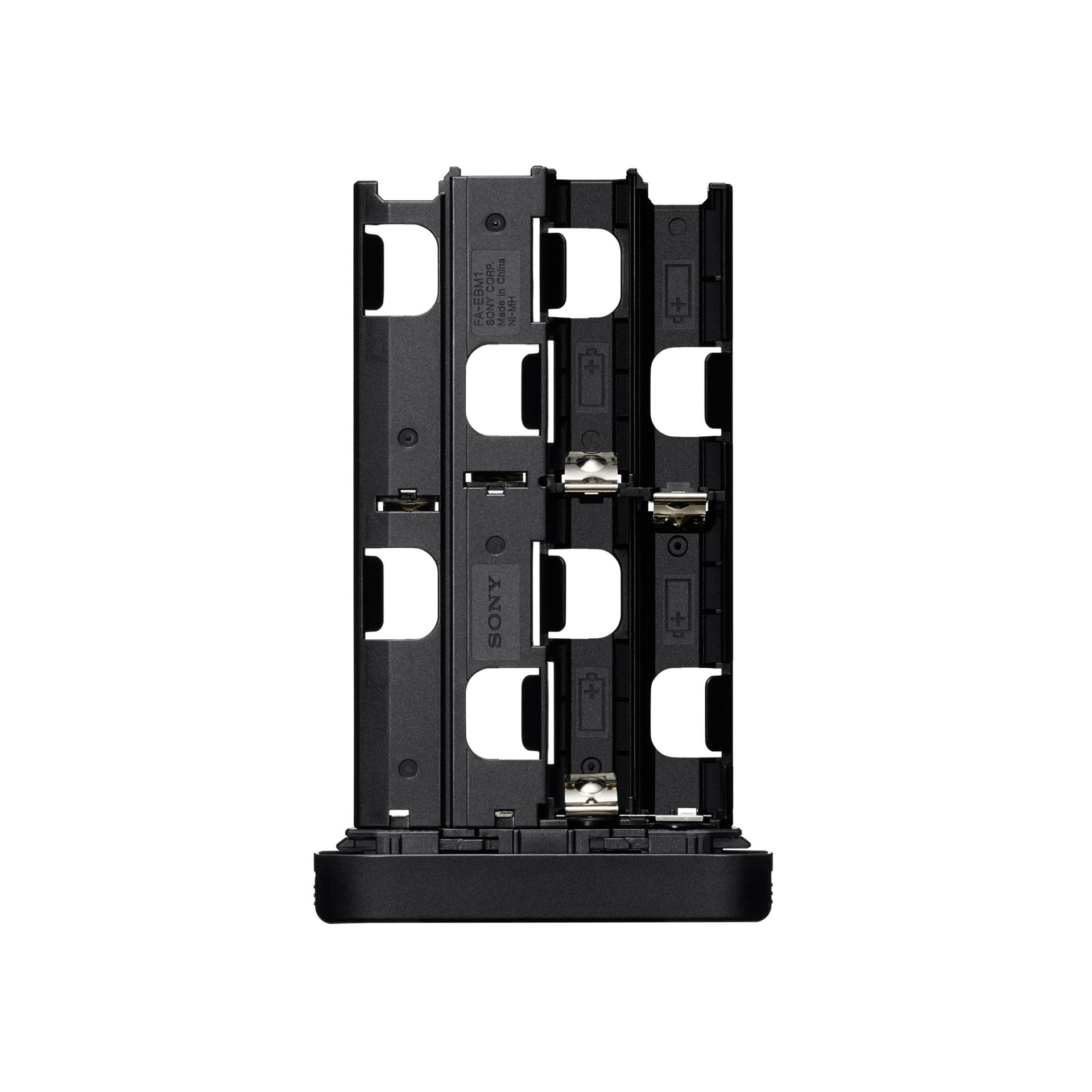 Ein Batteriemagazinsystem ermöglicht den schnellen Austausch von Batterien. Das Batteriemagazin kann in jeder beliebigen Ausrichtung eingesetzt werden – schnell und unkompliziert. Platz für acht AA-Batterien (Betrieb mit vier AA-Batterien möglich). Dem externen Batterieadapter für das Blitzgerät (FA-EBA1) wird bei der Nutzung Vorrang gegeben, um die internen Batterien des Blitzgeräts HVL-F60RM so wenig wie möglich zu beanspruchen.