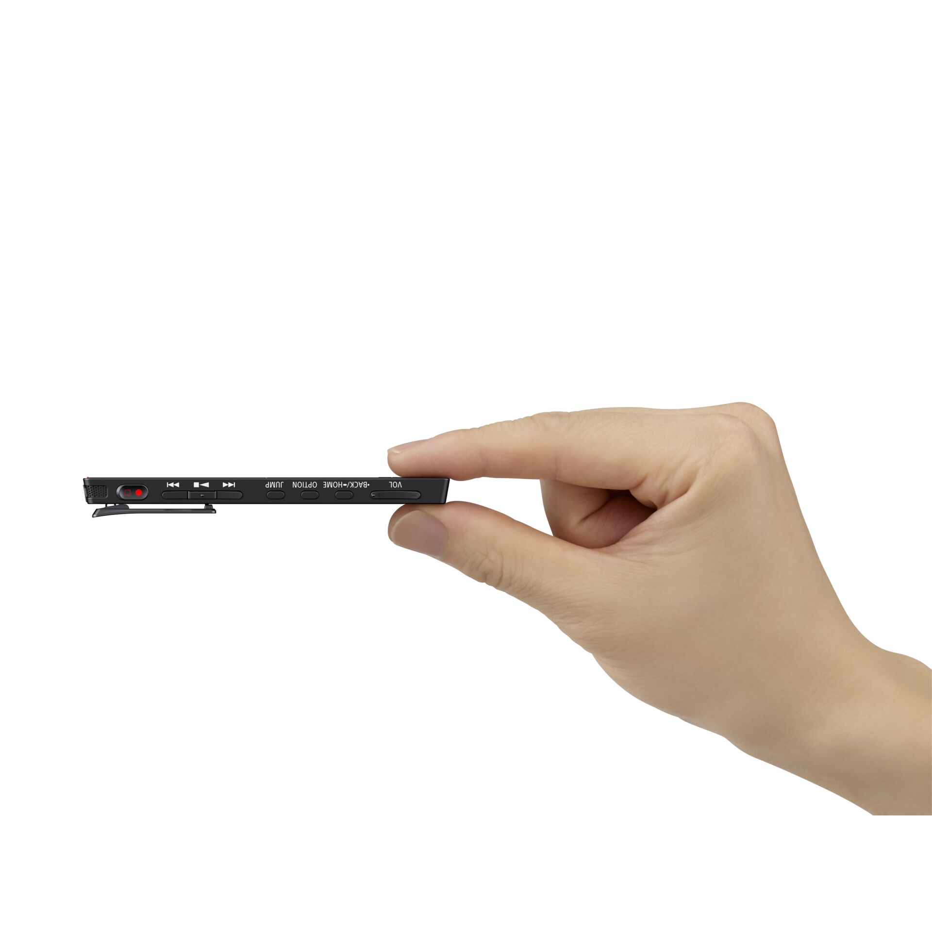 Der digitale Voice-Recorder ICD-TX660 für bis zu 636 Std. Audioaufnahmen passt mit seinem leichten und ultradünnen Metallic-Design bequem in jede Tasche und ist sofort einsatzbereit.