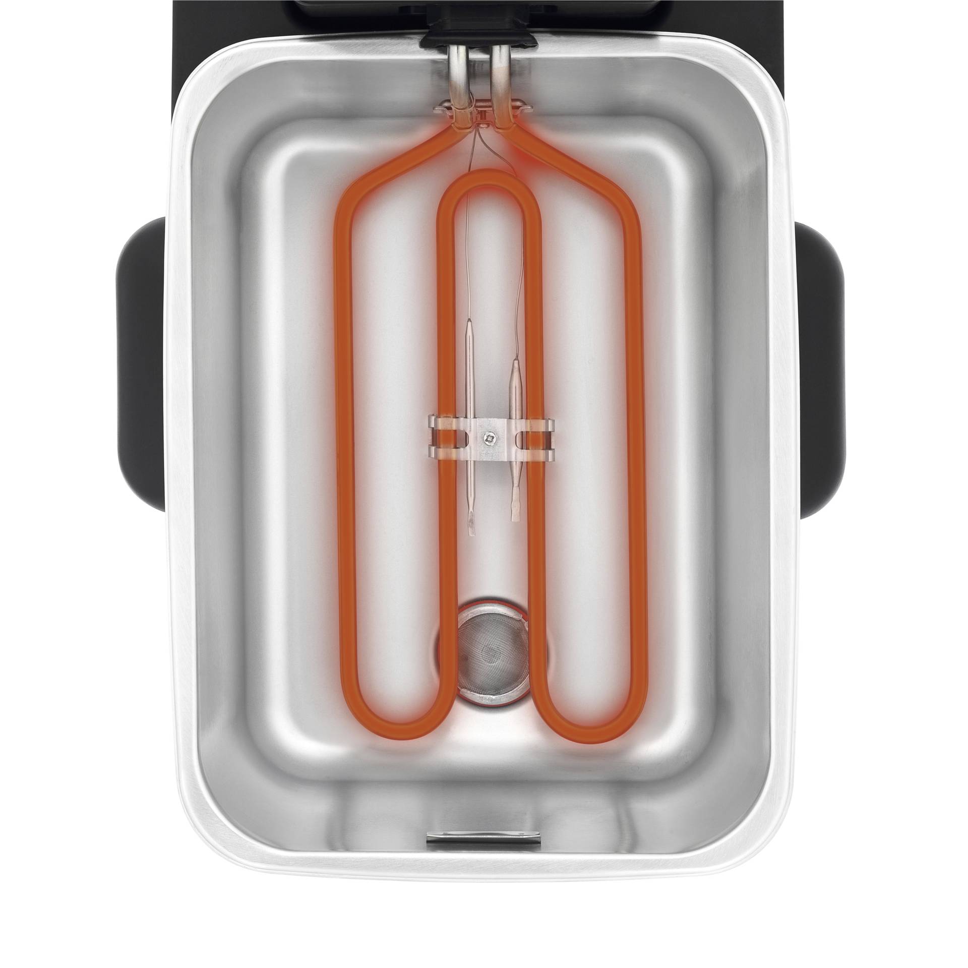 - Die Fritteuse kann ganz leicht auseinandergebaut und gereinigt werden: Schale, Deckel, Frittierkorb und Ölbehälter sind spülmaschinenfest