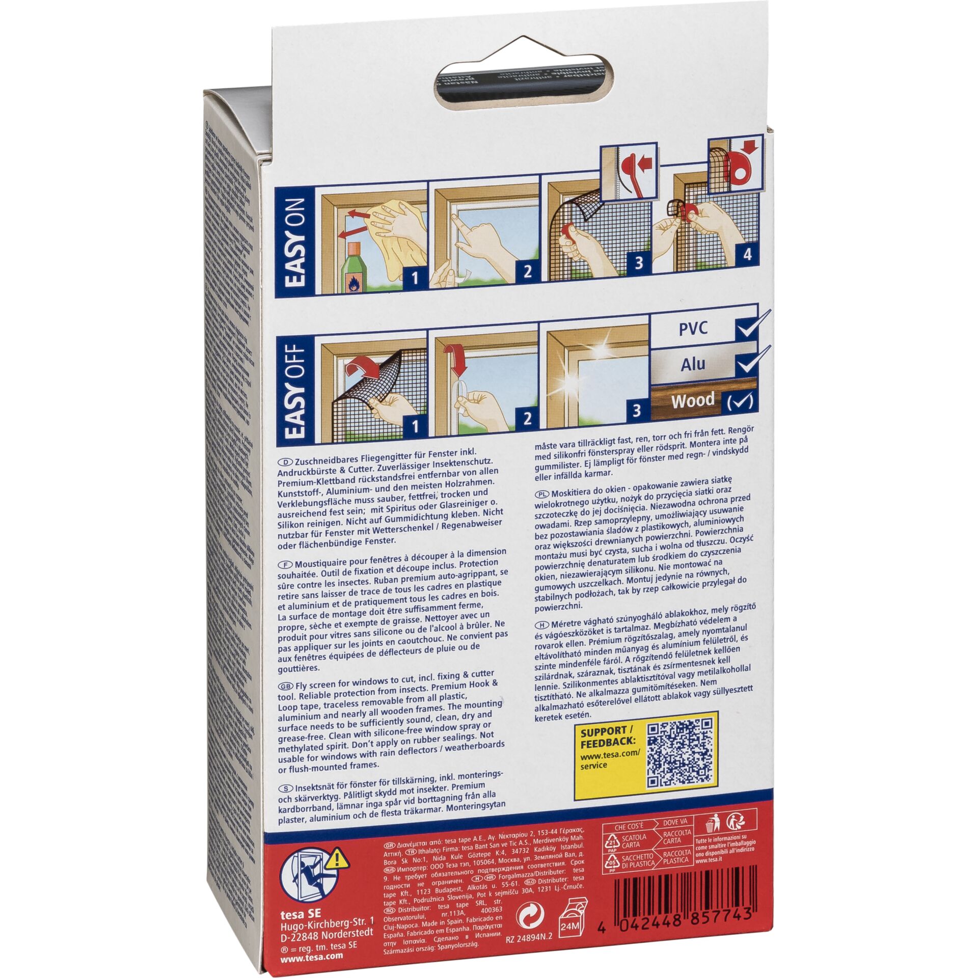 Das feinmaschige Insektengitter wird anschließend mit der beiliegenden Andrückhilfe auf das Klettband gepresst und bietet effektiven Schutz vor Insekten. Dank des Easy-off-Systems ist das Mückengitter rückstandslos entfernbar. Das Insektengitter kann bei 30°C gewaschen und mehrfach verwendet werden. Zudem ist es einfach anzubringen, erfordert kein zusätzliches Werkzeug und bietet festen Halt. Die hohe UV-Beständigkeit gewährleistet eine lange Lebensdauer