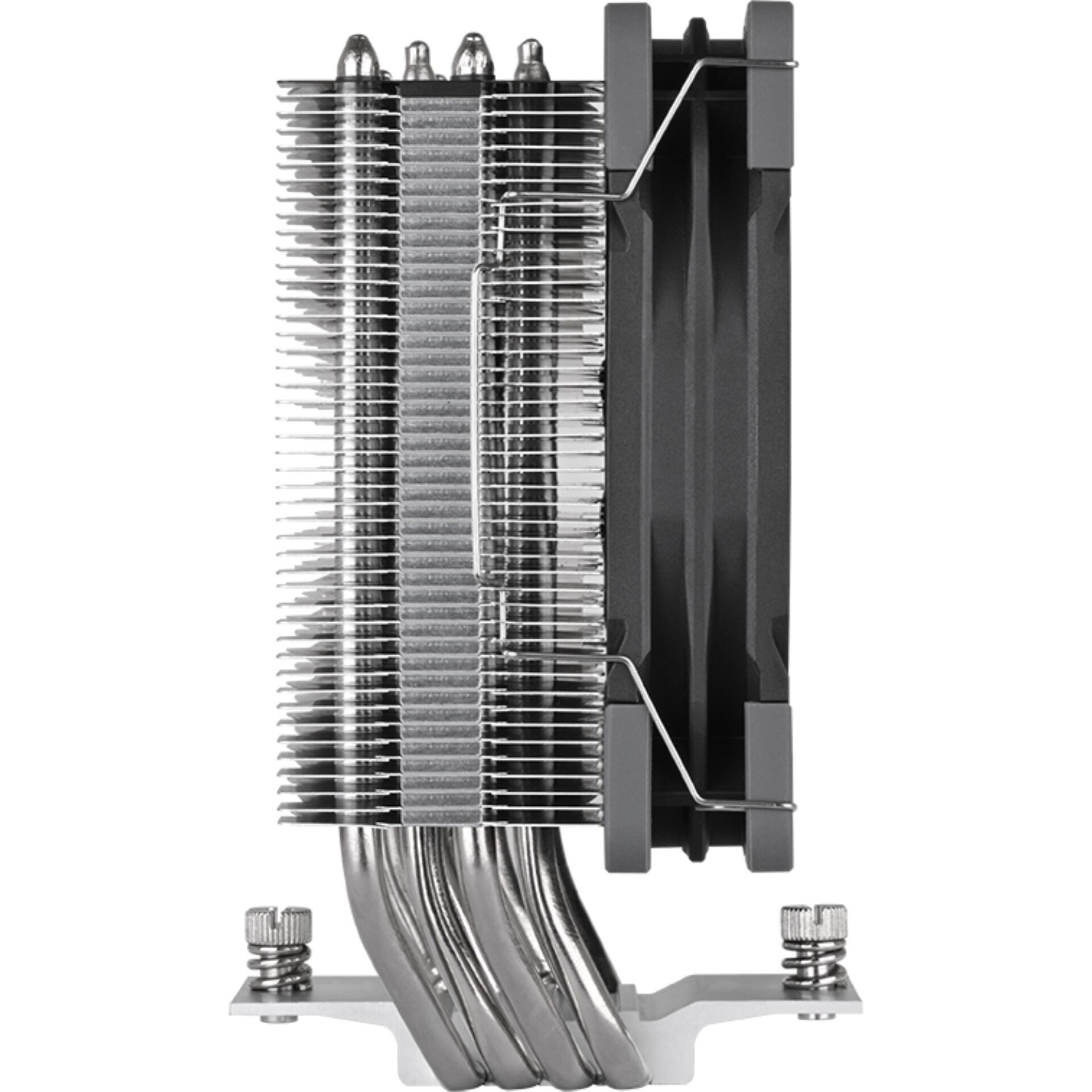 Der 120-mm-Lüfter passt seine Drehzahl automatisch an die Temperatur an und bleibt dabei angenehm leise. Durch das Hydrauliklager verlängert sich die Lebensdauer des Lüfters deutlich. Die Bauweise lässt zudem Platz für hohe RAM-Module und erleichtert die Integration in kompakte Gehäuse.