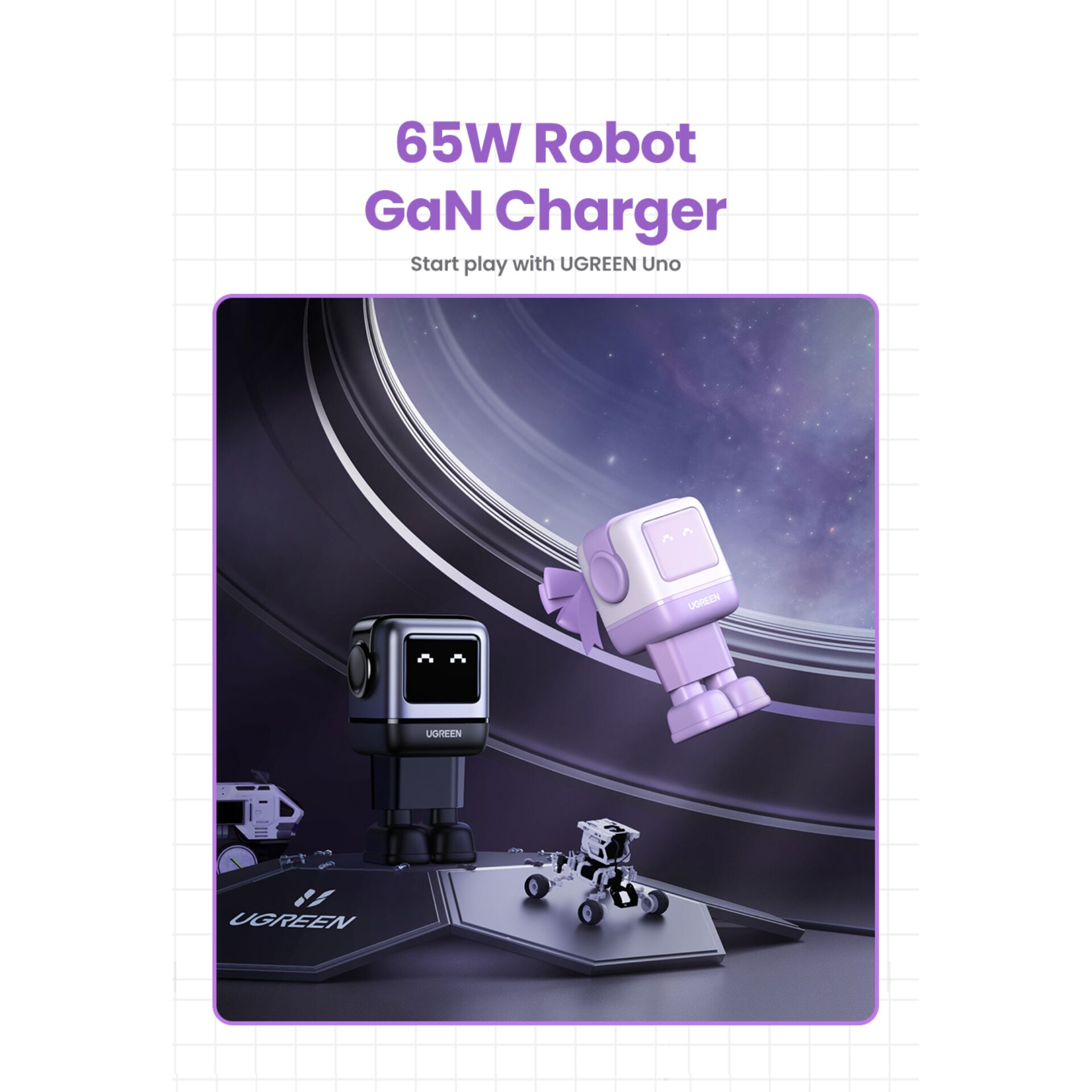 UGREEN Uno RG 65W 3-Port GaN Fast Charger EU purple