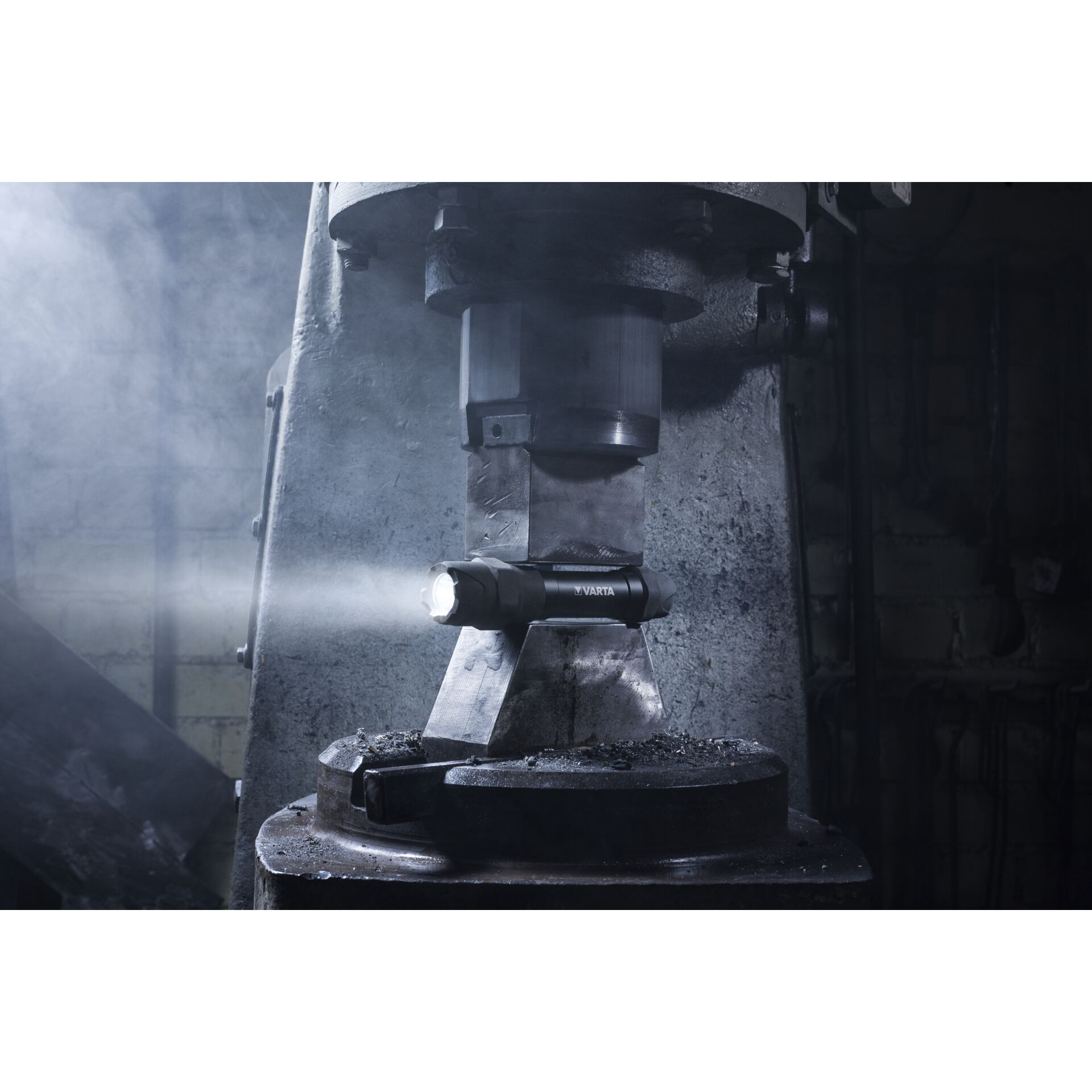 Extrem robuste Taschenlampe mit stoßabsorbierendem gummierten Leuchtenkopf und Endkappe: Varta Indestructible F30 Pro 6 Watt LED Aluminium 650 Lumen