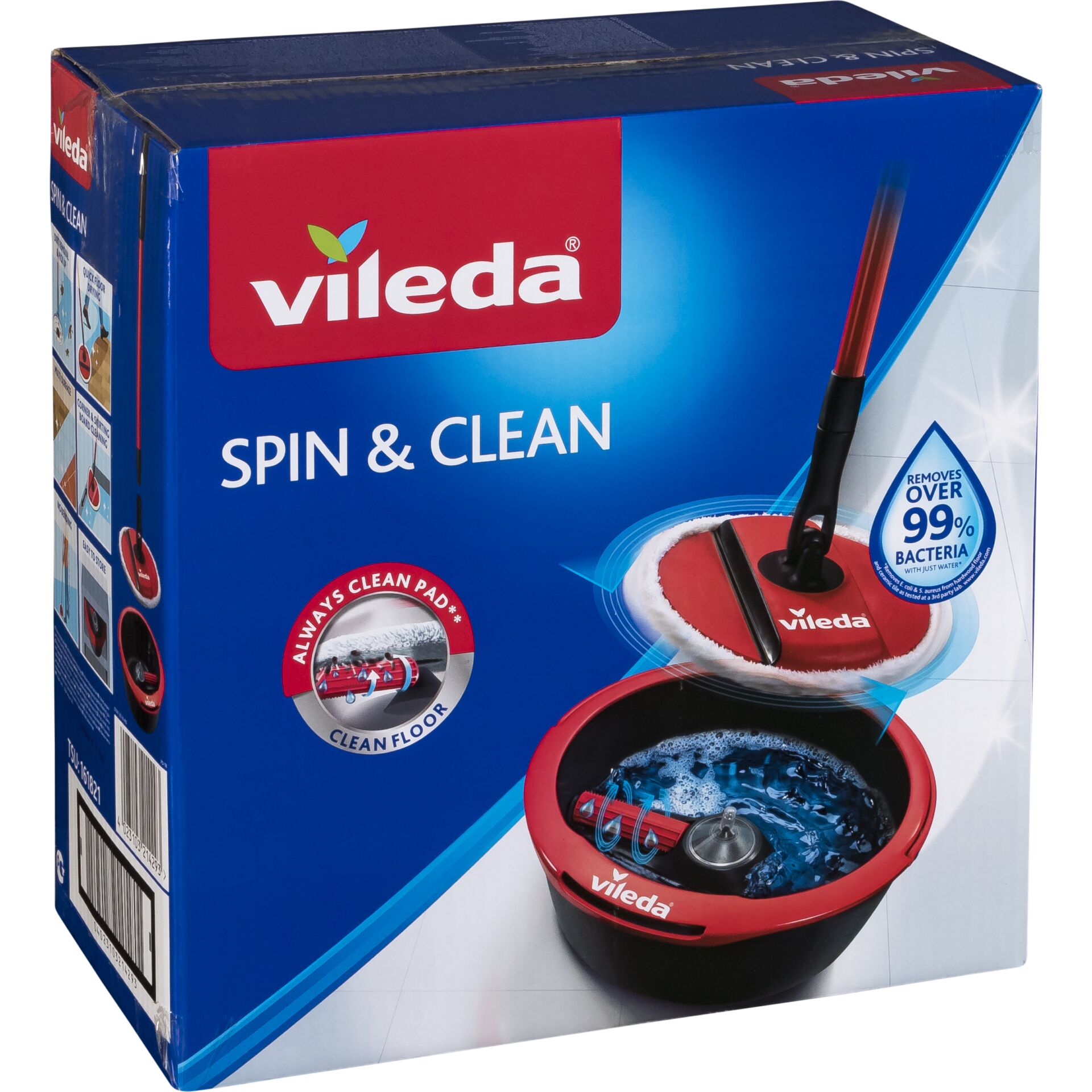 Der Vileda Spin & Clean ist ein innovatives Wischsystem, das aus einem Mopp mit Mikrofaserbezug und einem Eimer mit Schleuder und Reinigungswalze besteht.