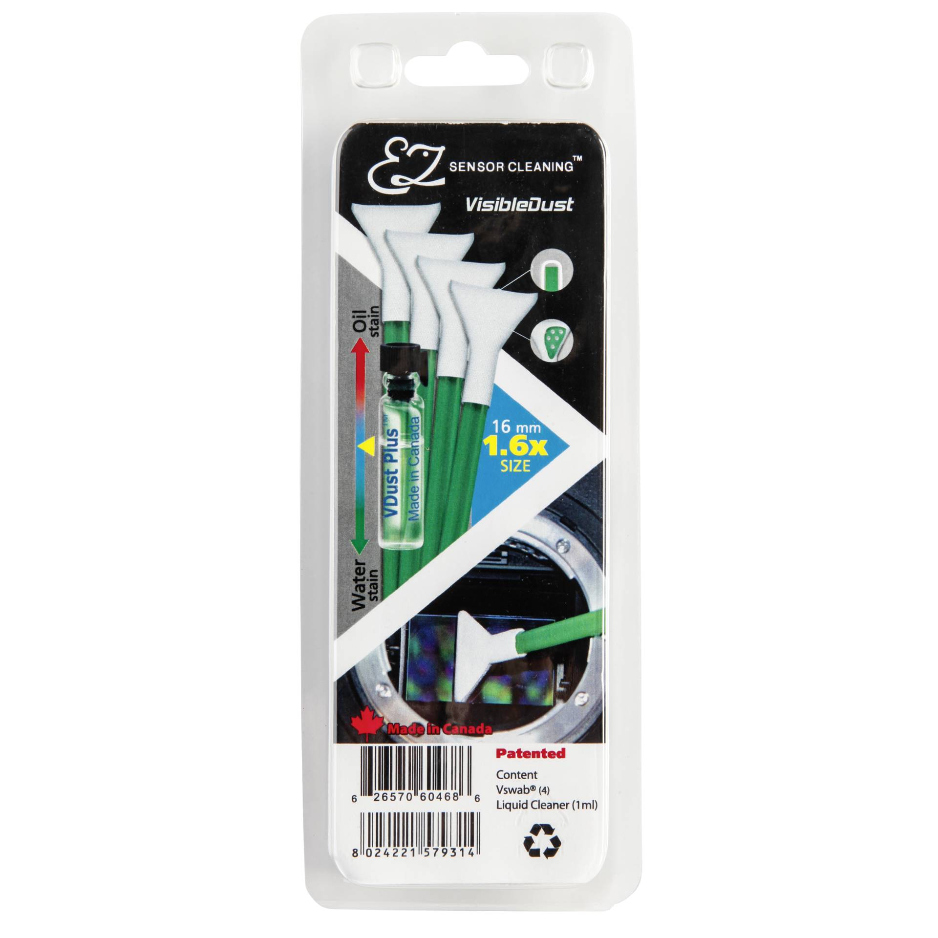 Dieses Mini-Nass-Kit von Visible Dust setzt sich zusammen aus 4 grünen VSwabs (Größe 1.6x) und 1ml Reinigungslösung VDust Plus. Sie ist somit die optimale Einsteiger-Größe.