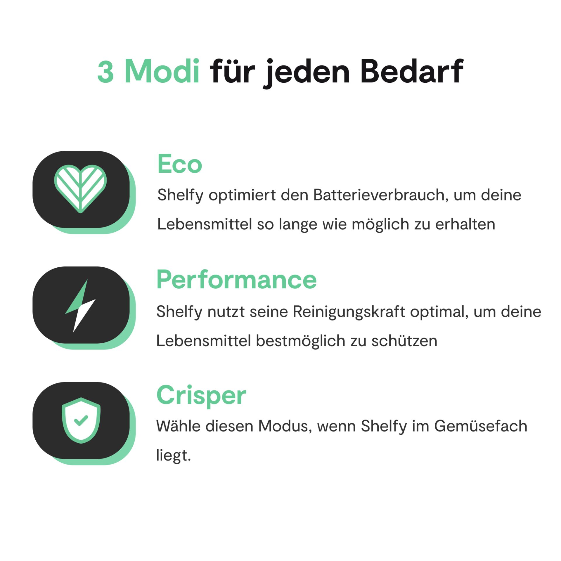 - Crisper: Verwende den Modus, wenn sich dein Shelfy im Gemüsefach befindet.