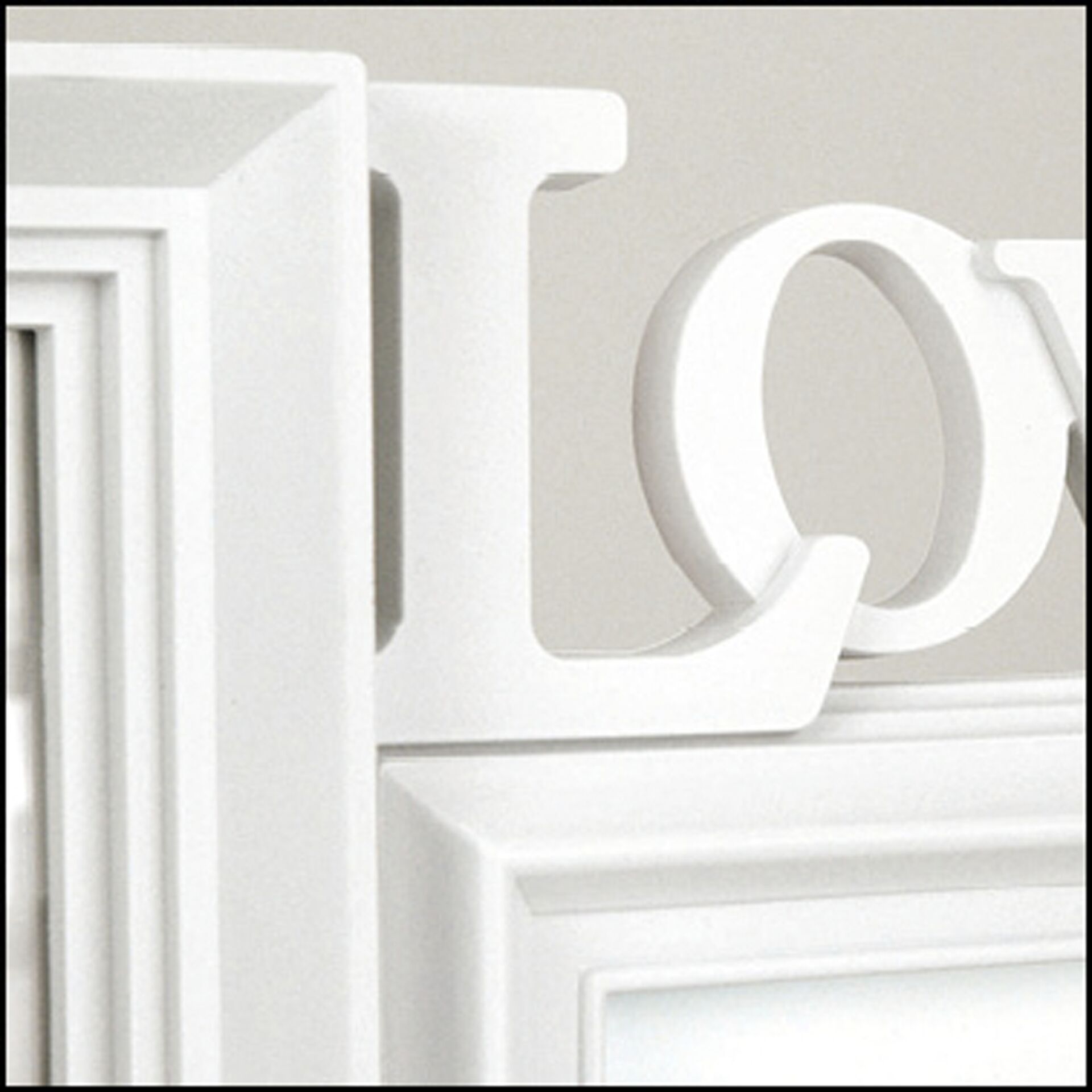 Schöner Kunststoffrahmen für 2 Bilder in Weiß mit 3D-Schriftzug LOVE. Der Rahmen kann Bilder der Größe von 10x15 bis 13x18 aufnehmen.